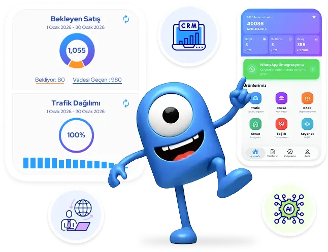 Sigorta işlemlerinde zaman kaybına son. IO CRM ile ihtiyaçlarınıza uygun tekliflere hızlı ve kolayca ulaşın.